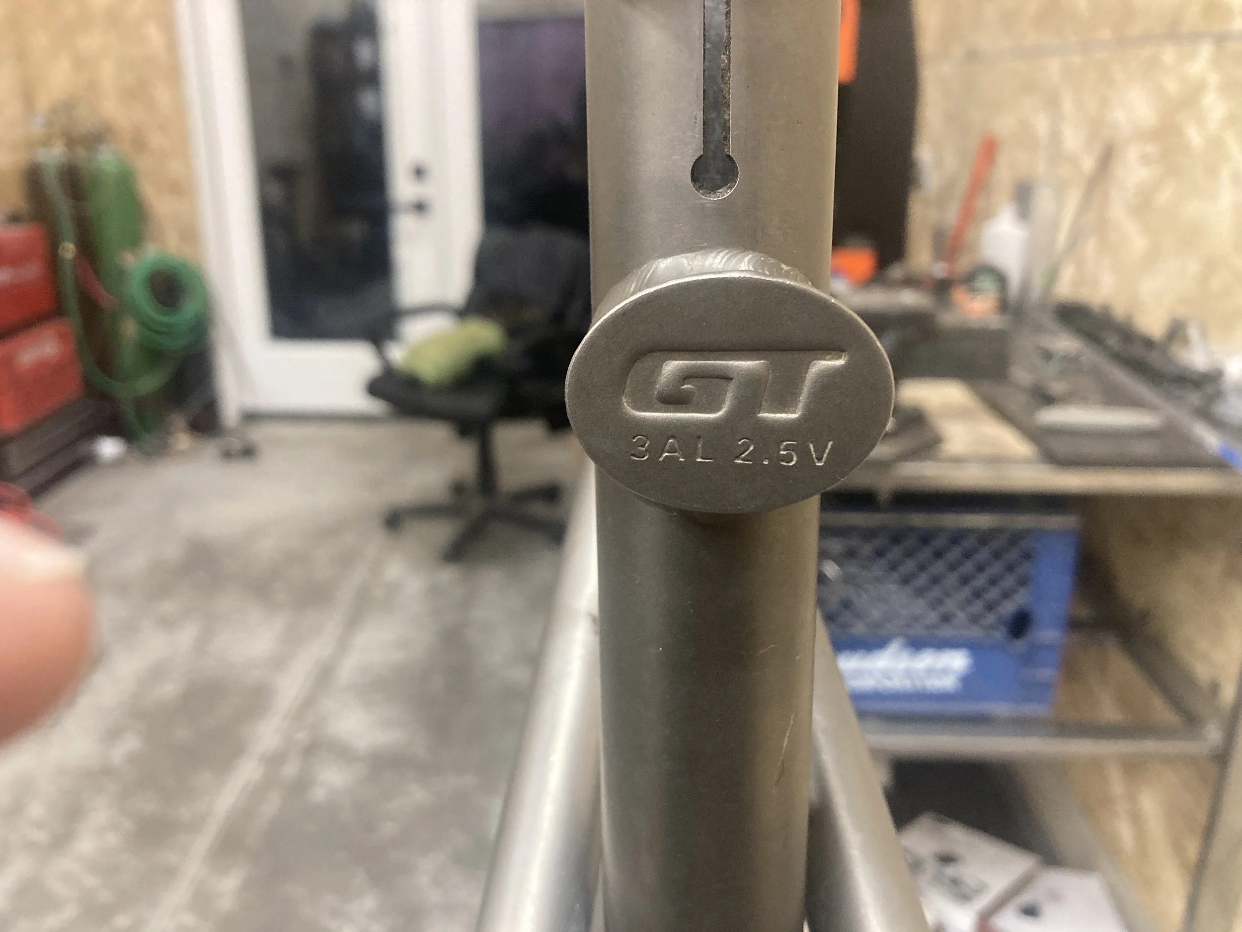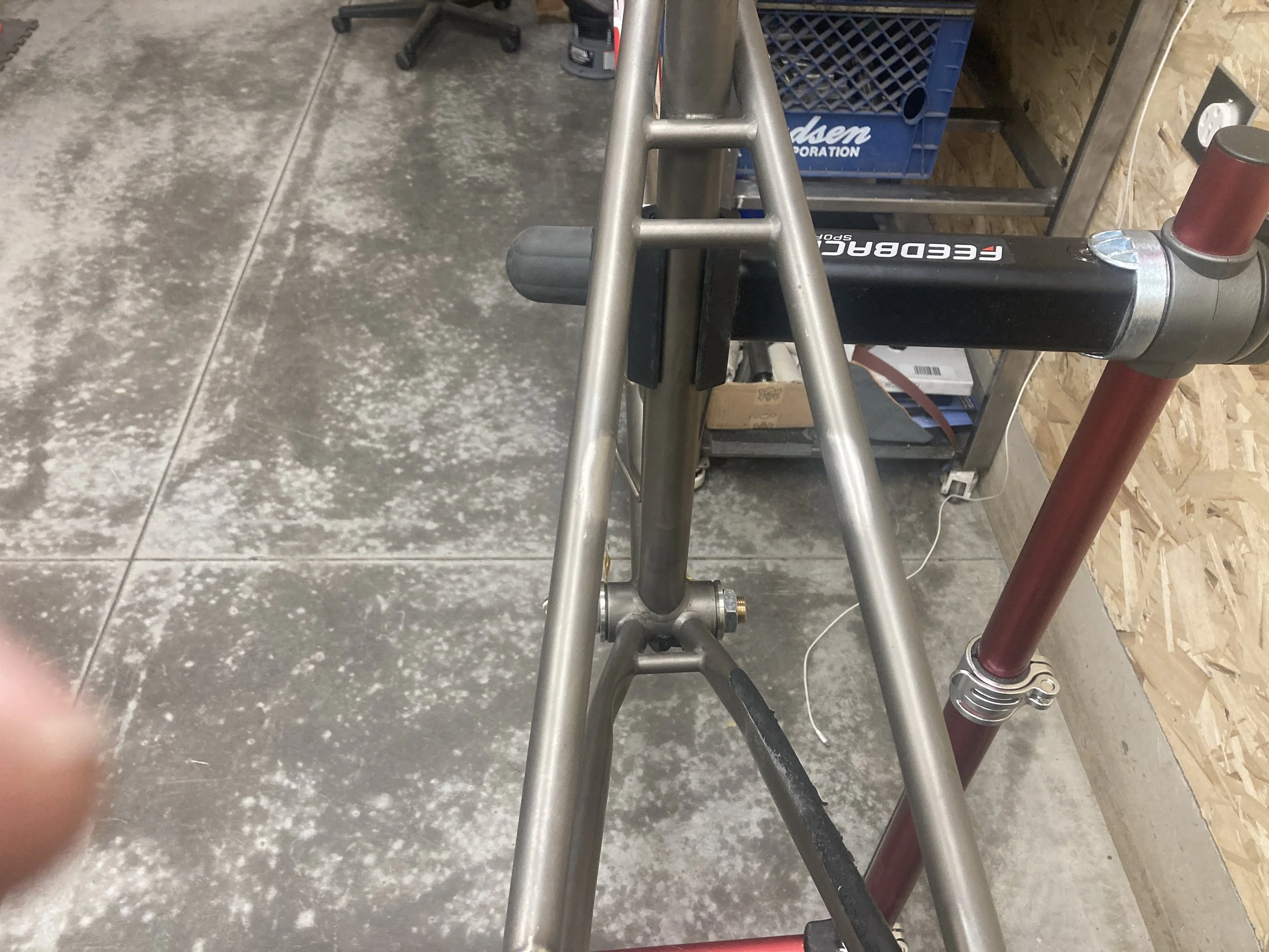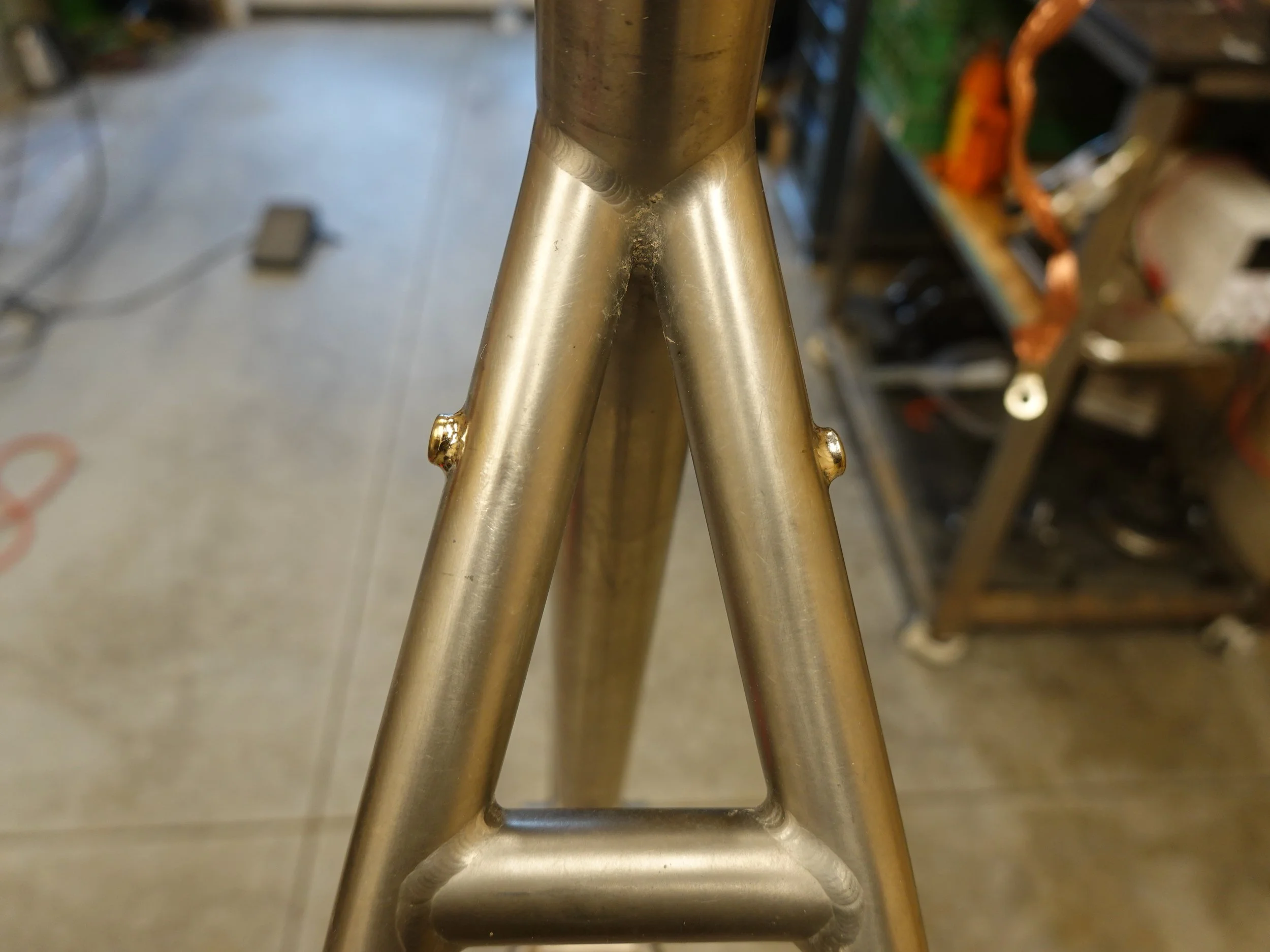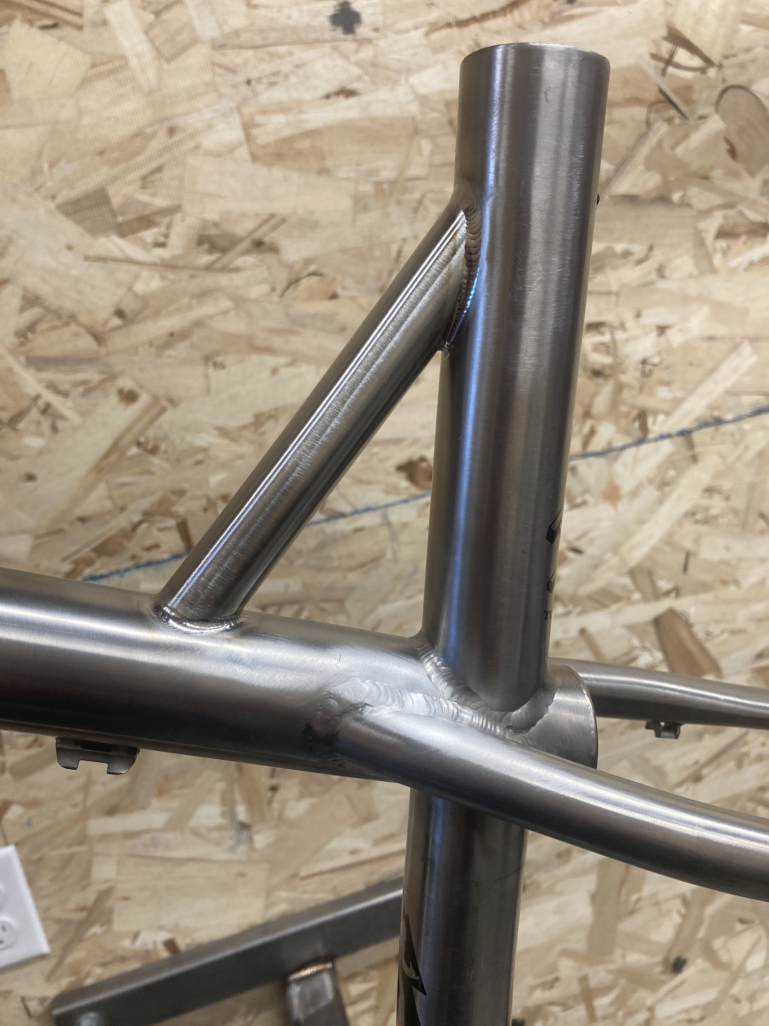 Titanium kona hardtail, removed the cracked sheet metal brace and added a tube!