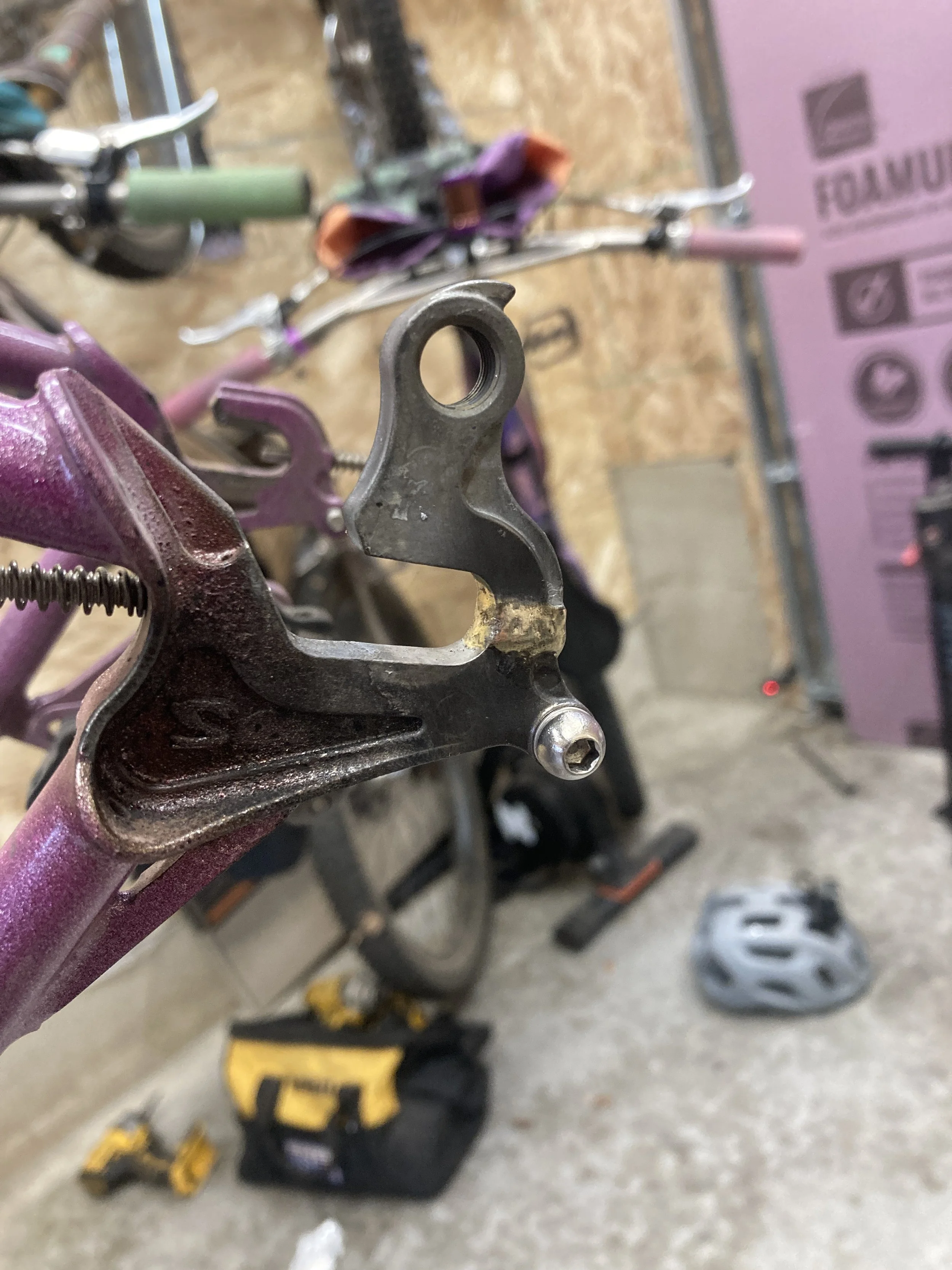 Surly dropout reattached, brazing